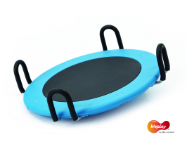 孩子坐於圓盤上,雙手抓住把手 ,以手搖動旋轉盤使其旋轉,讓孩子體會搖擺的感覺,加強前庭平衡覺的刺激,可單人或雙人共玩。